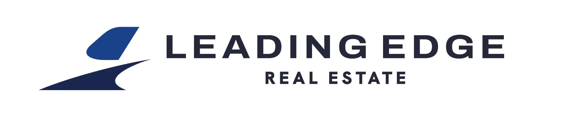 This logo for Leading Edge Real Estate features a refined mark inspired by the aerodynamic form of an aircraft wing, symbolizing lift, precision, and forward momentum. Paired with clean, modern typography